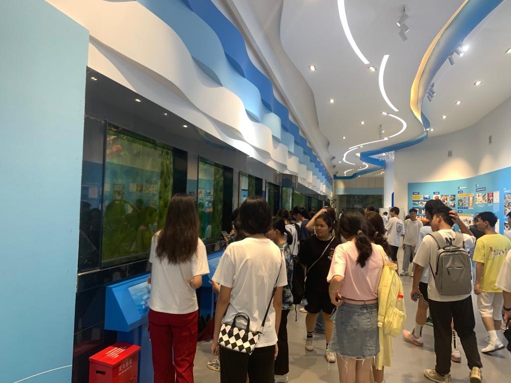 第二站,新生们一同参观水生生物博物馆。博物馆整体紧密体现以“海洋”为主题的思路,展览陈品做到科学性、知识性和趣味性相结合,馆内收藏的海洋生物标本琳琅满目,种类齐全,采集面广,保存完备,置身于水生生物博物馆里,就像徜徉在浩瀚的知识海洋之中。