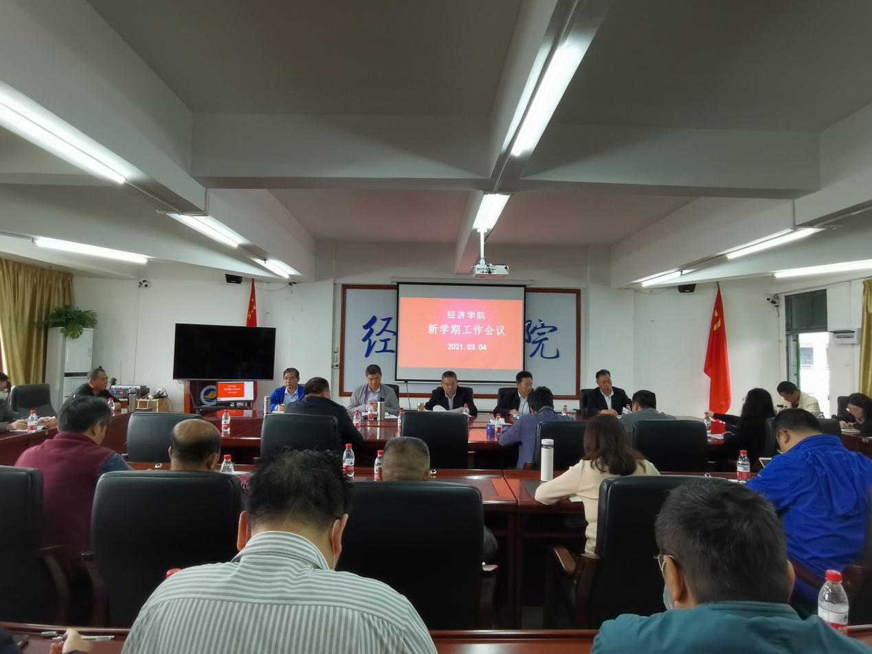 会议首先由杨新华副院长介绍了学院2020年度教学教研绩效考核结果的情况说明,指出了在创新创业教育、教研教改项目申报及管理和人才培养方案的执行等方面存在的问题,要求按分工原则将考核责任落实到人,切实提高绩效水平。随后对2021年度春季学期的教学教研工作进行了安排。副院长陈本良介绍了2020年度科学研究及学科建设方面的绩效考核情况,他认为,学科建设虽然有一点基础,但仍需要进一步提升学科层次,在全院科研方面急需要新的突破,随后对新学期学科建设和科学研究项目申报等方面的工作进行部署。副书记董萍对2020年度学生工作业绩绩效考核情况进行了说明,对就业创业工作、学生工作品牌化建设、学生工作理论研究水平等方面提出的要求。提出了扎实做好学生常态化疫情防控和思想政治教育、开展学风建设主题活动等十个方面的工作安排,强调本学期工作重点及工作计划。学院院长居占杰指出,为了进一步提高绩效水平,重点工作要一抓到底,抓出成效;同时要抓住新机遇、迎接新挑战,以永不懈怠的精神状态和一往无前的奋斗姿态,推动学院高质量发展;强调指出一定要坚持教学科研并重,取得教研科研标志性成果。还对学院新学期工作提出了十个方面的部署。学院党委肖文辉书记最后就如何进一步做好单位考核、疫情防控、基层党建等方面工作,提几点意见。简要介绍了全年要开展的五项党建重点工作:一是要紧扣建党 100 周年重大主线,开展全方位和全覆盖的系列主题宣传教育活动;二是聚焦接受省委巡视重大政治任务,认真配合学校党委接受省委政治巡视各项相关工作;三是深入实施党组织“对标争先”建设计划,全面加强具有经院特色的党建品牌建设;四是提升党建引领中心工作能力,推动学院改革发展不断实现新的跨越;五是坚持统筹发展和安全,严格落实意识形态工作责任制。