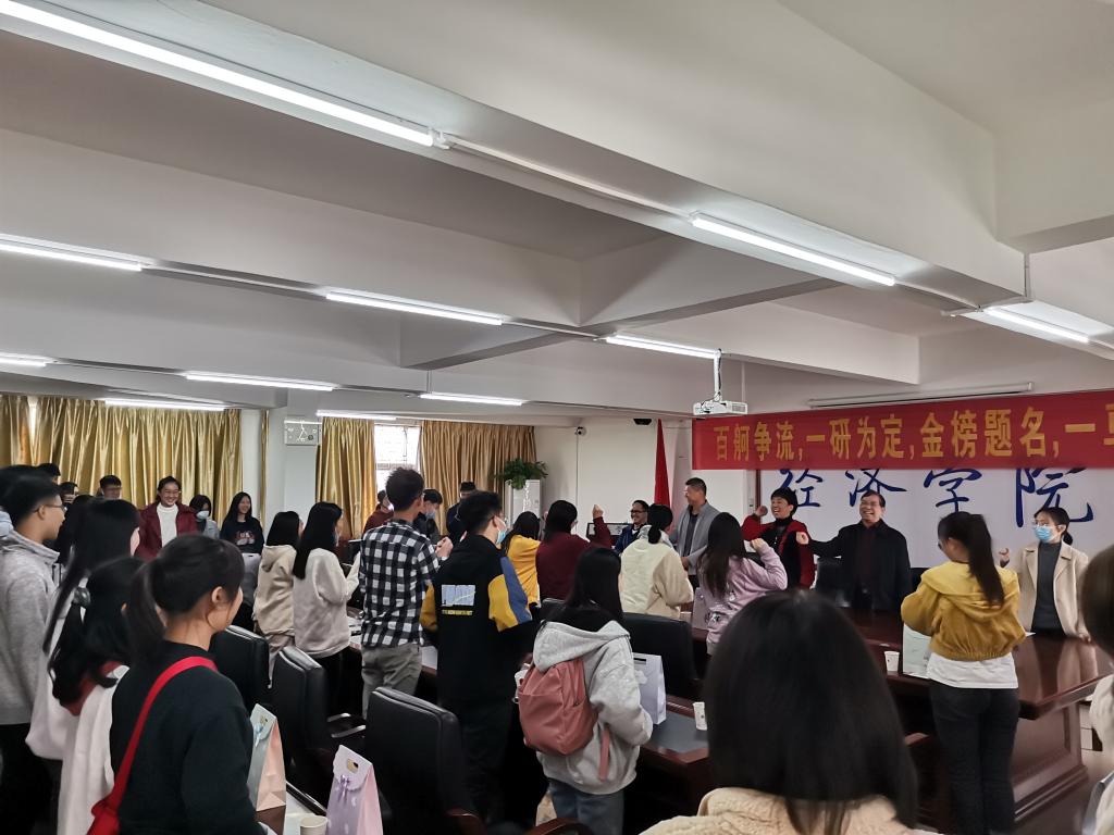12月25日上午,beat365体育官网在主楼718召开了考研学子行前欢送会。学院党政领导、全体辅导员和全体2021届考研同学参加了本次会议。