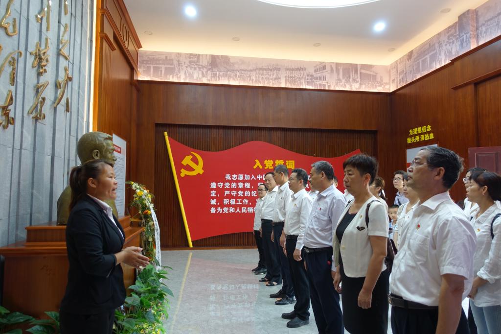 随后,全体人员进入纪念馆参观。伴随着讲解员声情并茂地解说,陈列在纪念馆中的旧物件和泛黄的照片将大家的思绪带回到革命先辈为了解放事业不惜抛头颅洒热血的峥嵘岁月。黄学增烈士是广东南路革命先驱、大革命时期广东省四大农运领袖之一,又是土地革命时期广东西江和海南岛红军、苏维埃政权的创始人之一。作为南路地区第一位中共党员,他被敌人逮捕时仅29岁,然而为实现共产主义的崇高理想,面对艰难险阻、挫折和困难,面对敌人的屠刀和威迫利诱,他始终保持共产党员的浩然正气,是共产党人坚持理想、信念、忠诚的纯洁典范。