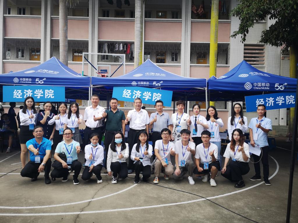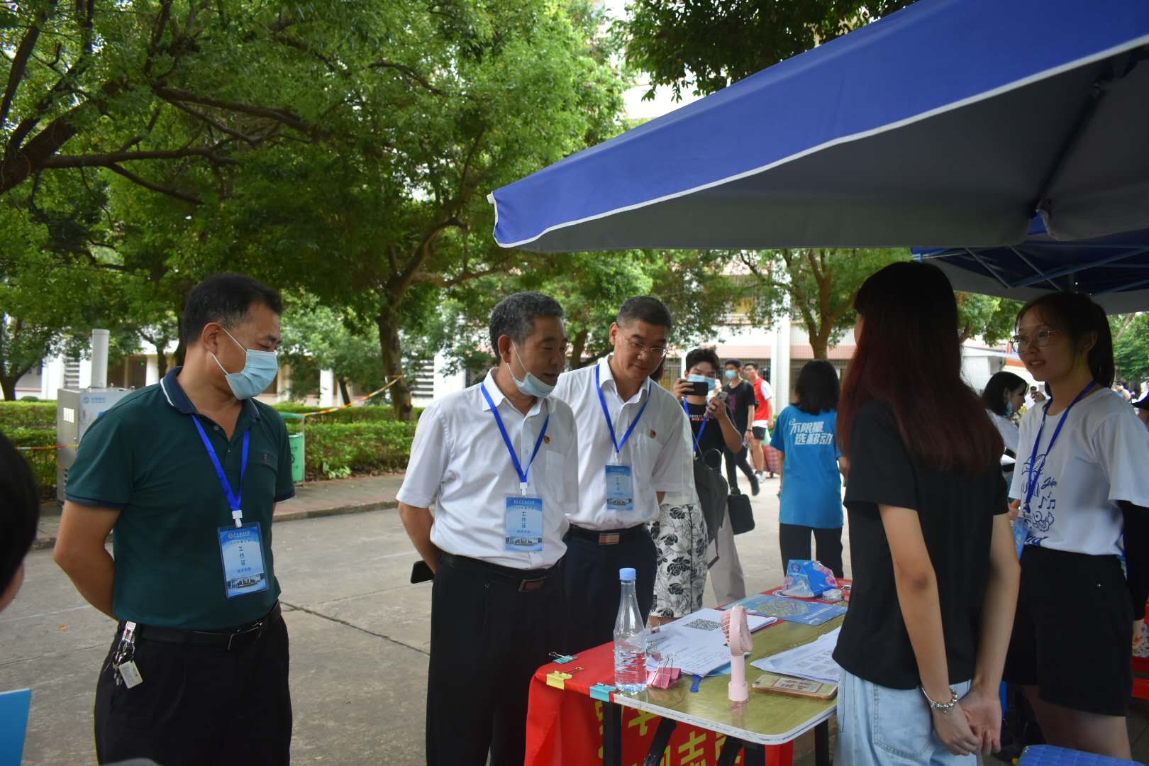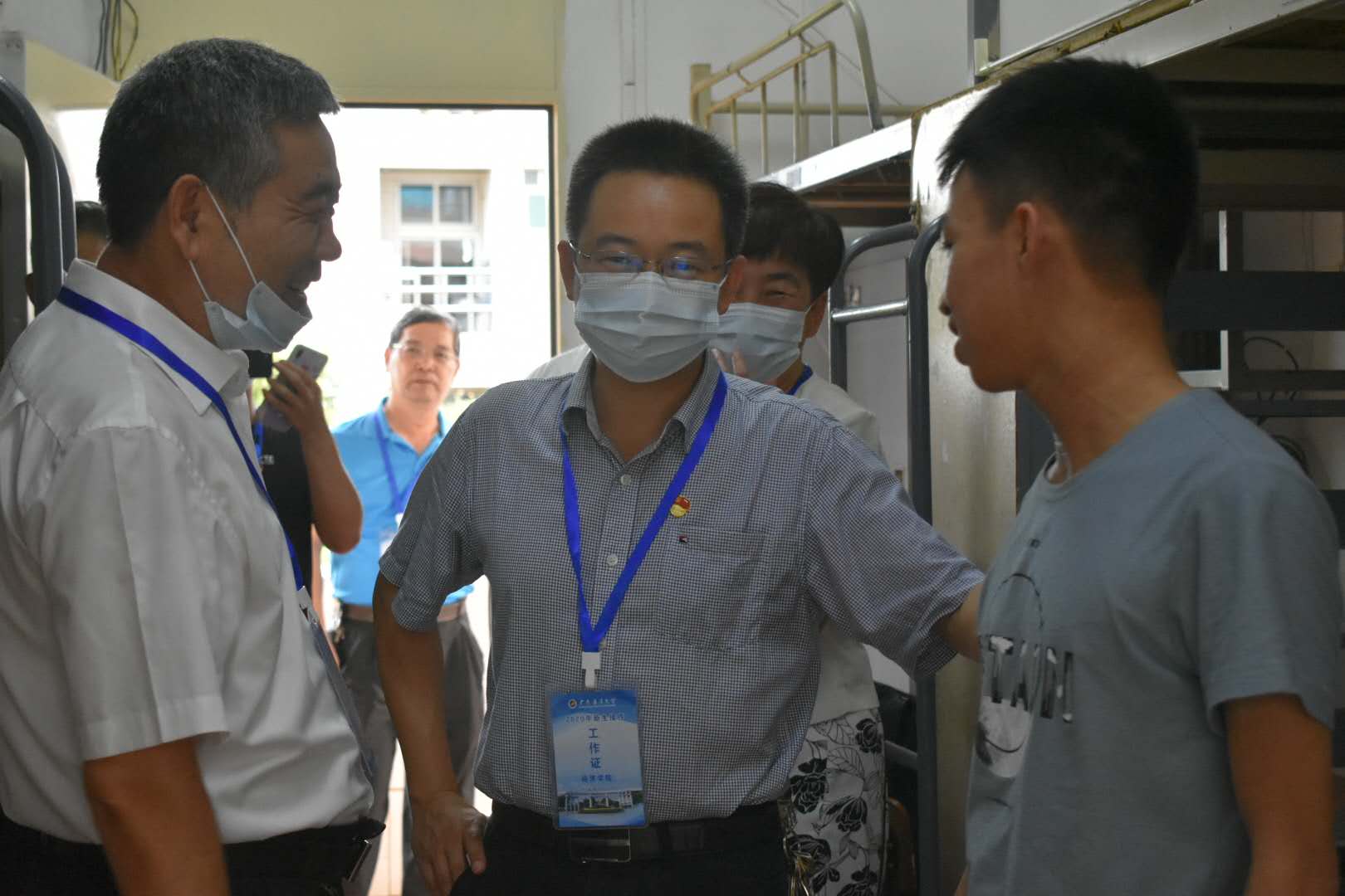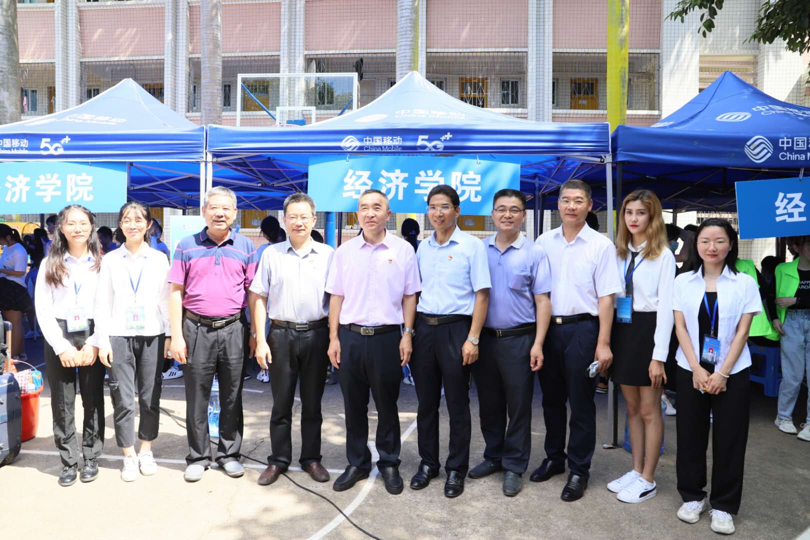 12日,新生报到高峰期,学校党委书记曹俊明、校长潘新祥、党委副书记林晓敏、副校长刘东超等学校领导莅临我院新生接待点,亲切慰问并指导接待工作,与工作人员合影留念。