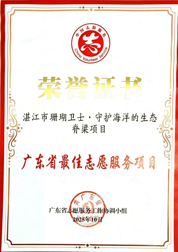 最佳志愿服务项目殊荣既是广东海洋大学实施“内涵发展、特色发展、创新发展”战略的典型成效,beat365体育官网“一核双轮三维四平台”创新创业教育模式成果的生动写照,也彰显了广东海洋大学师生志愿者在生态保护领域的担当。“珊瑚卫士”的星光正汇入南粤志愿服务的星河,让海洋生态保护的力量生生不息。