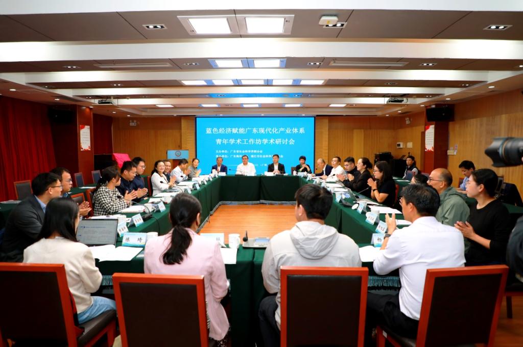 在全省上下深入学习贯彻党的二十届四中全会精神以及广东海洋大学90周年校庆之际,由广东省社会科学界联合会主办、我校与湛江市社会科学界联合会共同承办的 “蓝色经济赋能广东现代化产业体系”学术研讨会,于2025年11月13日在广州广东社会科学中心成功举行。本次研讨会由我校发起组织的“海洋牧场可持续发展模式与策略研究”青年学术工作坊为核心平台,汇聚了省内高校多位相关领域的优秀青年学者,围绕蓝色经济与现代化产业体系建设展开了深度对话与思想碰撞。