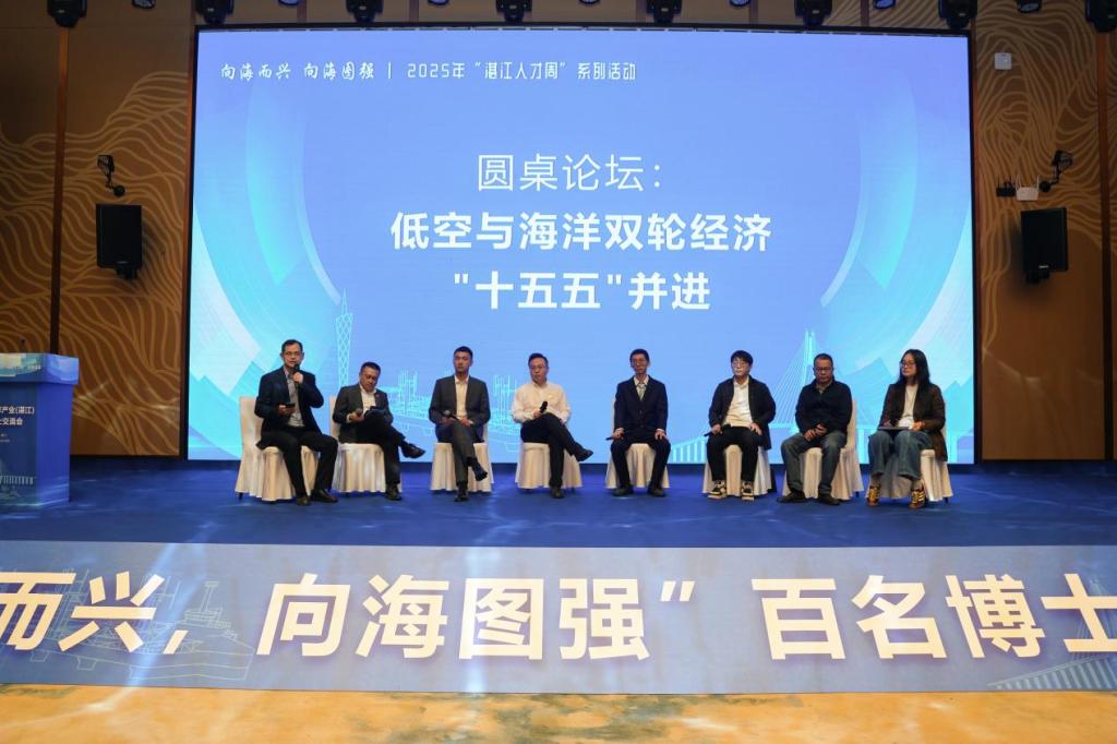 作为本次活动的核心亮点,圆桌论坛环节特别设置了"低空与海洋双轮经济'十五五'并进"与"海洋产业可持续发展"两大前沿议题。我院龚征旗教授作为特邀嘉宾受邀出席圆桌论坛,与产学研各界的青年人才及领军人物共话发展。在研讨中,龚教授结合湛江低空经济与海洋经济的发展现状,深入剖析了当前存在的技术瓶颈、产业协同难题及战略机遇,其专业见解与前沿思考引发了与会专家的热烈讨论,为湛江探索低空经济与海洋经济融合发展的创新路径提供了重要参考。
