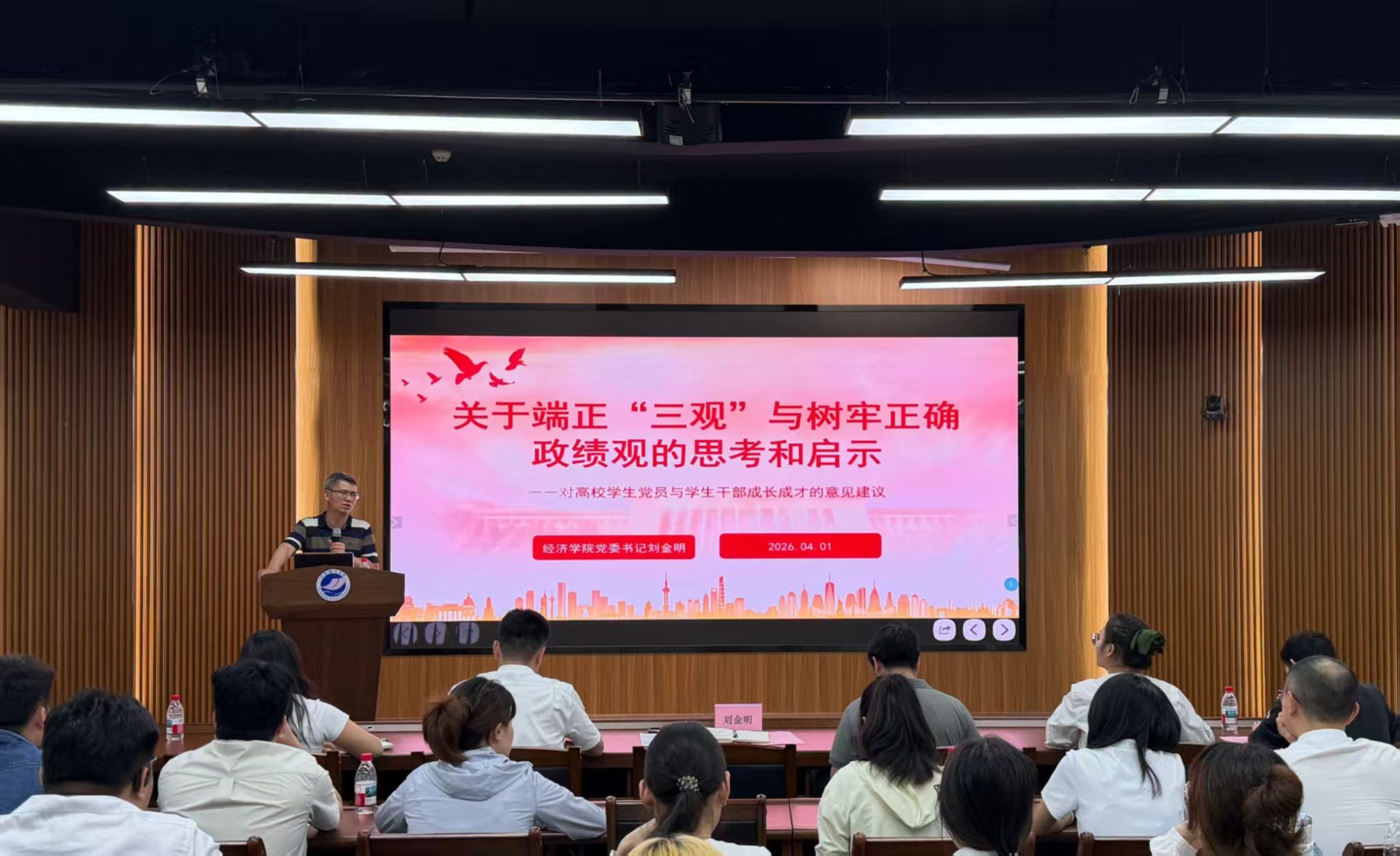 为加强青年学生思想政治引领,4月1日下午,beat365体育官网党委书记刘金明以《关于端正“三观”与树牢正确政绩观的思考和启示——对高校学生党员与学生干部成长成才的意见建议》为主题,在海创楼303报告厅为学院学生党员和学生干部代表、青马班学员讲授“思政第一课”。