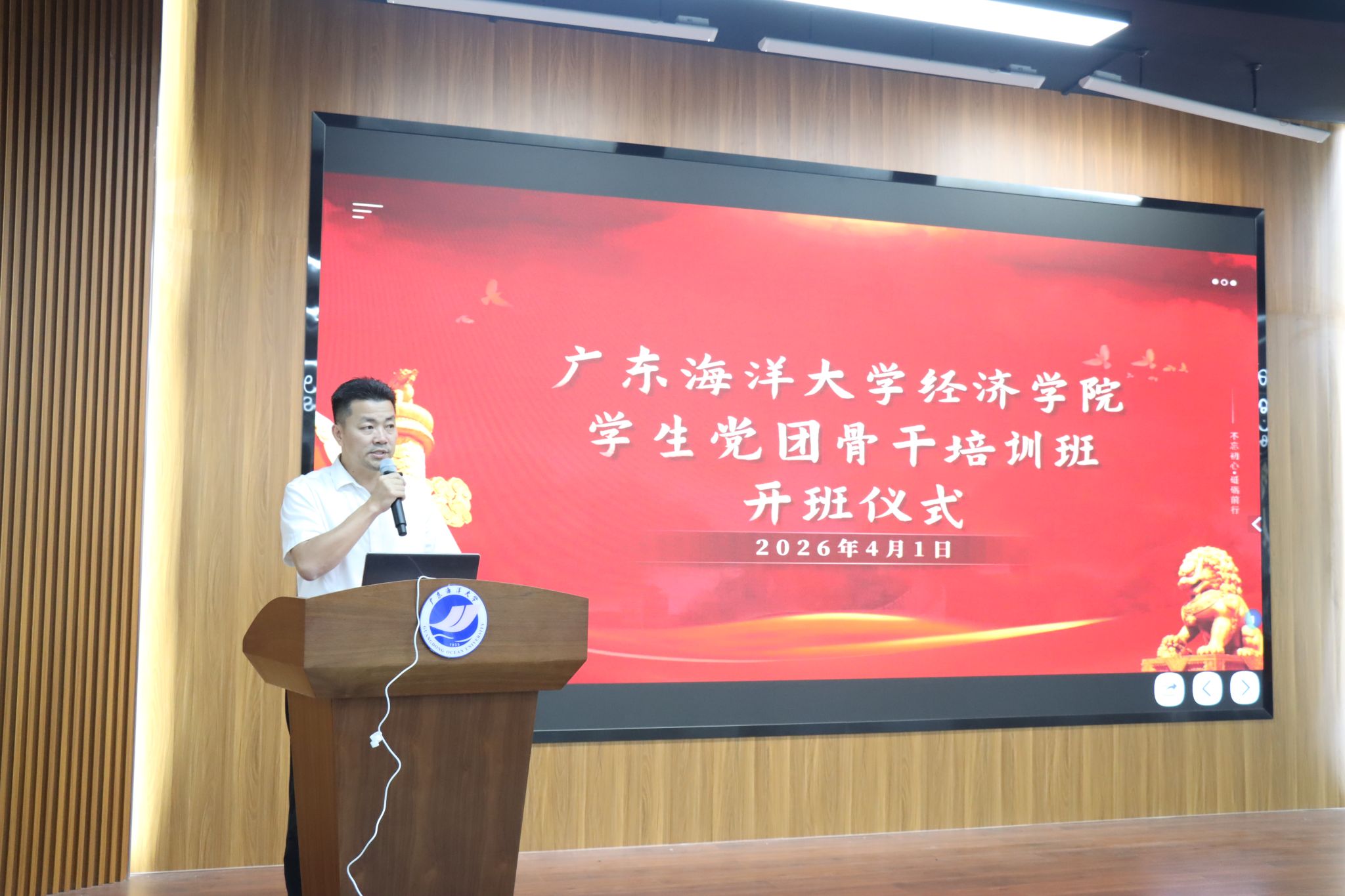 4月1日下午,beat365体育官网2026年学生党团骨干培训班开班仪式在海创楼303报告厅顺利举行。学院党委书记刘金明出席仪式,学院党委副书记、正处级辅导员钟桂安主持开班仪式并受学院党委委托作动员讲话,学院组织员、全体辅导员等参加仪式。学生党员、团委、学生会、学院易班分站、就业协助会各部门负责人及青马班学员等140余名骨干参加培训。