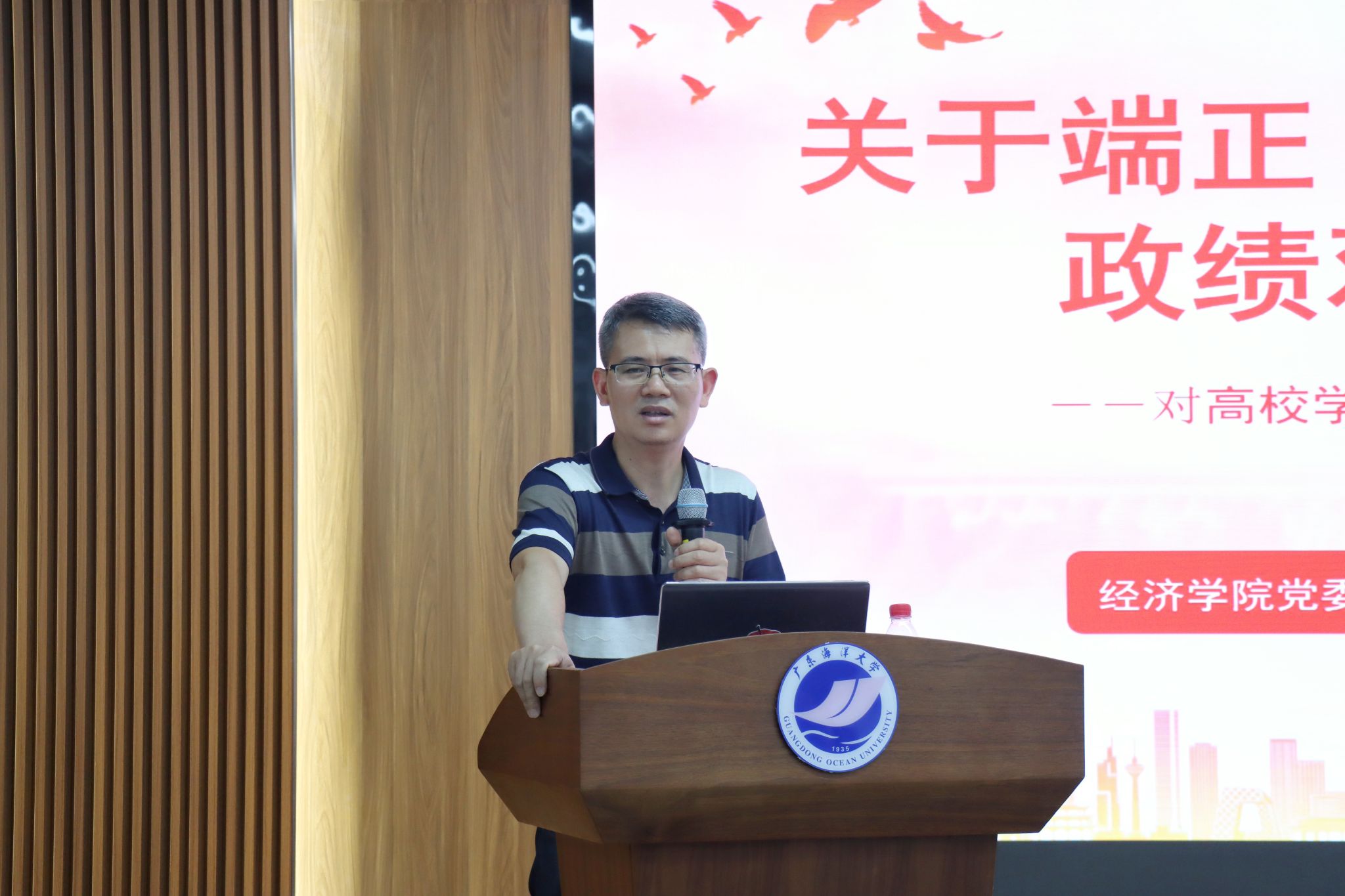 刘金明以《关于端正“三观”与树牢正确政绩观的思考和启示--对高校学生党员与学生干部成长成才的意见建议》为题,讲授开班第一课。他围绕端正世界观、人生观、价值观的重要性,深入阐释正确政绩观的内涵与时代意义,传达解读了习近平总书记和党中央对青年学生的殷切期望与要求,并结合分析高等学校学生行为准则,详细讲解如何以正确“三观”和政绩观的内涵规范自身言行。希望学生骨干主动发挥朋辈引领作用,带头营造优良学风,带头培育和践行社会主义核心价值观,努力成为品学兼优的新时代大学生;勉励大家着力爱党爱国、守纪守法、创新创优,着力自省自立自强、求是求真求正,坚持做到向上向善向好。