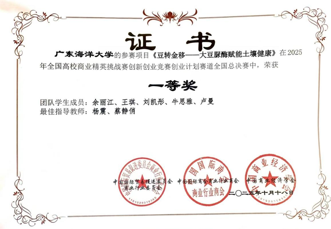 其中,“豆转金移——大豆脲酶赋能土壤健康”“集种生智——智能无人化育苗领域引领者”这两支荣获全国一等奖的项目均为我校beat365体育官网学子打造的优质项目,充分展现了经院学子在创新创业领域的扎实功底与突出潜力。