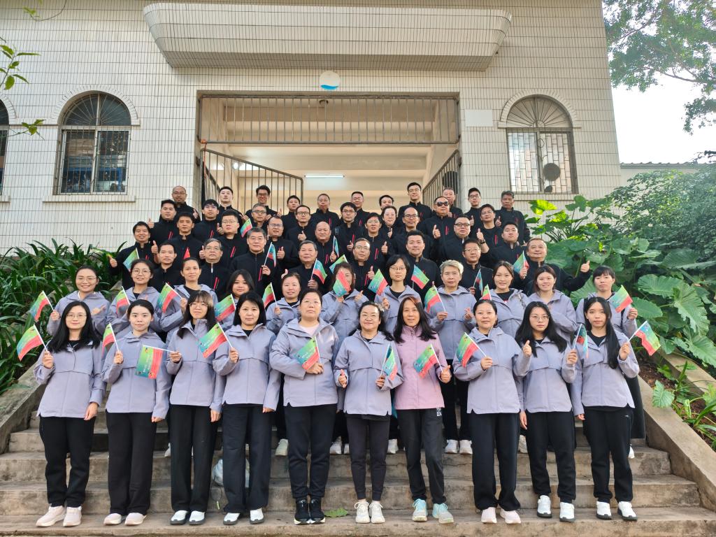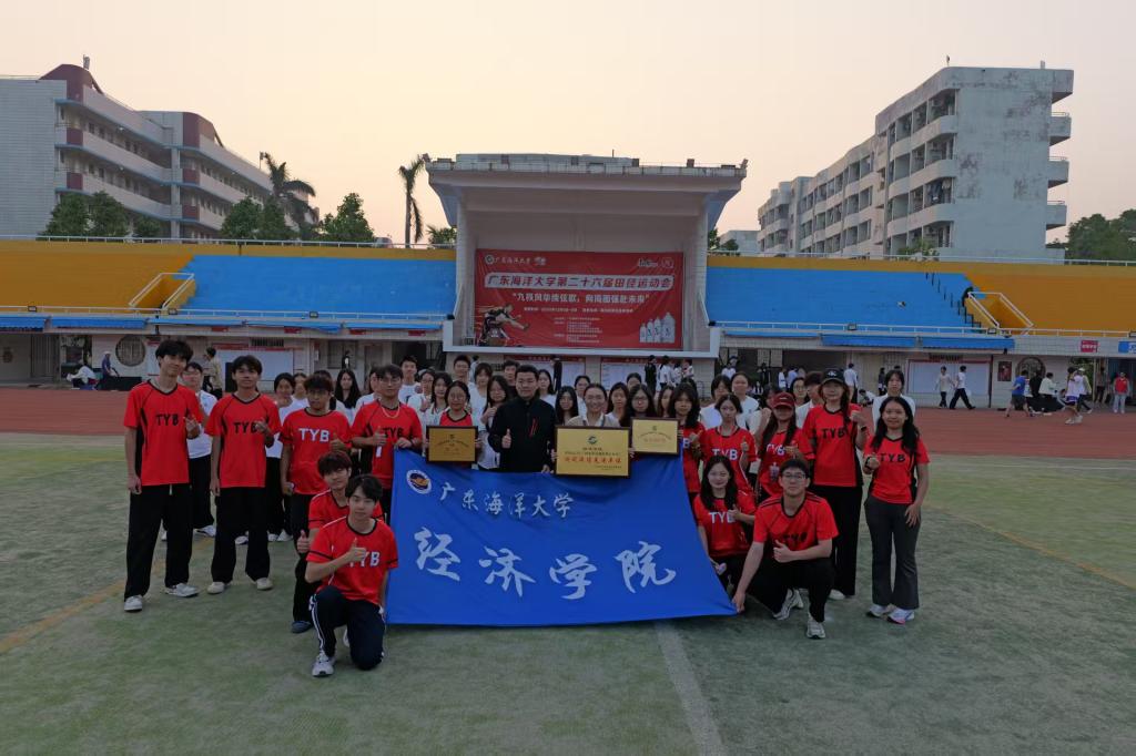 12月5日,我校第26届运动会在湖光校区东区体育场开幕。在开幕式方阵展示环节,60余名教职工身着统一运动服,以“鹰隼试翼,展翅云间,唯我经院,志冲九天”昂扬姿态亮相开幕式,展现出积极向上的集体精神面貌。