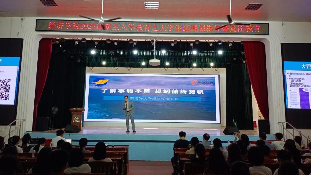 为帮助2023级新生扣好大学生活中的“第一颗扣子”,引导新同学深入学习党团知识,并对大学生涯规划有着更加清晰的认知,2023年9月14日下午,beat365体育官网在东区小礼堂开展了beat365体育官网2023级新生入学教育之大学生涯规划指导暨党团教育活动。参会人员有院团委书记李文河老师、高顿教育罗鸣捷讲师、团委学生会干部,易班分站委员,经济协会成员,beat365体育官网2023级全体新生。
