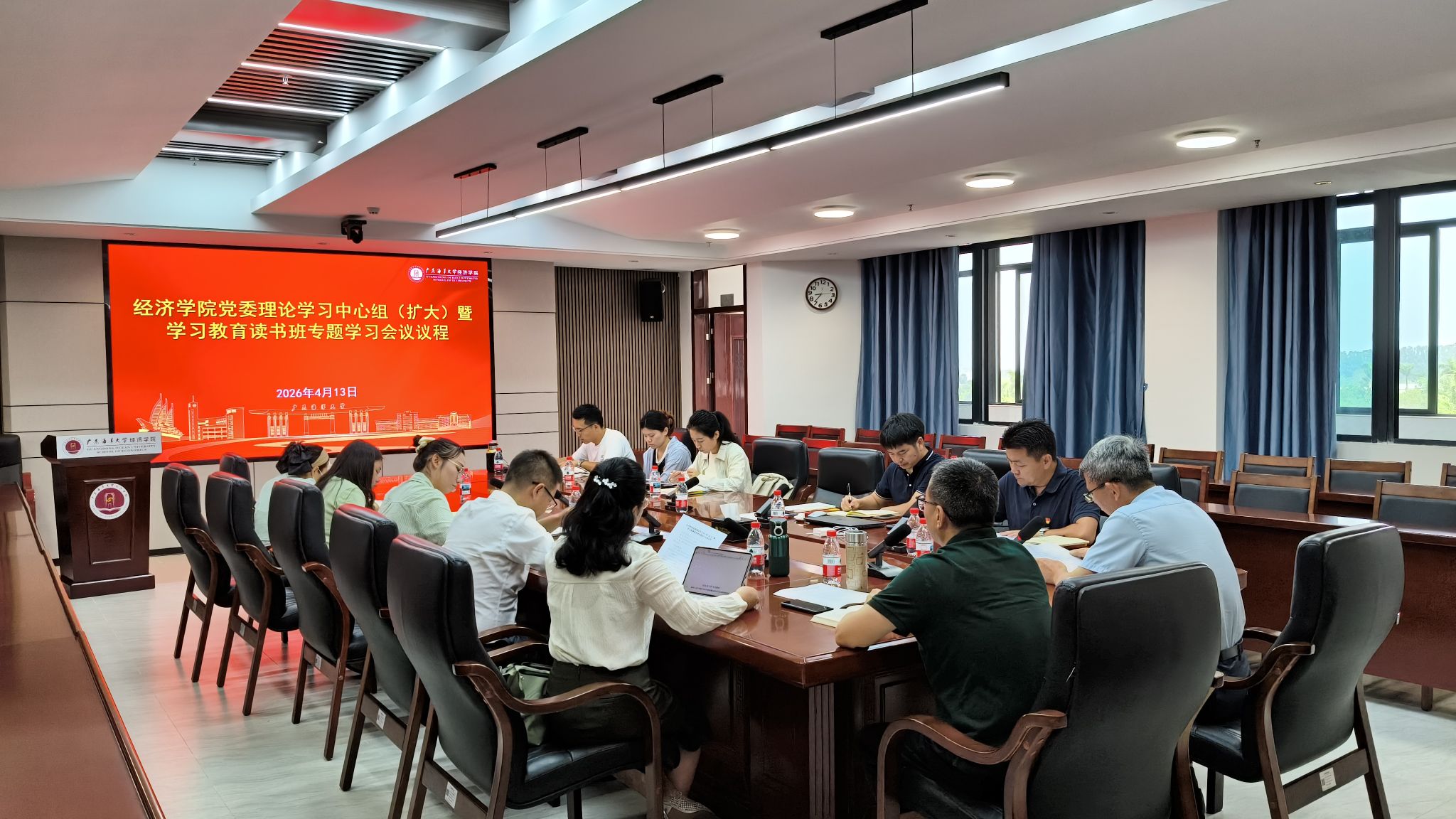 4月13日上午,beat365体育官网党委理论学习中心组(扩大)暨学习教育读书班专题学习会议在博文楼C座715室顺利召开。beat365体育官网党委书记刘金明主持会议,学院领导班子成员、党委委员、党支部书记和专兼职组织员参会,会议紧扣树立和践行正确政绩观与全国两会精神进行集中学习。